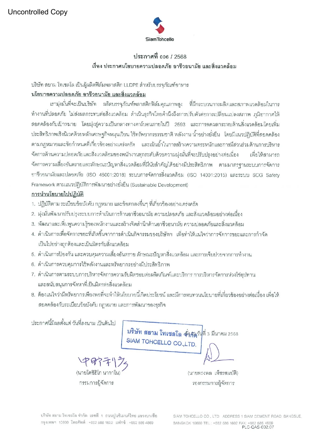 ชื่อบริษัท : สยาม โทเซลโล จำกัด