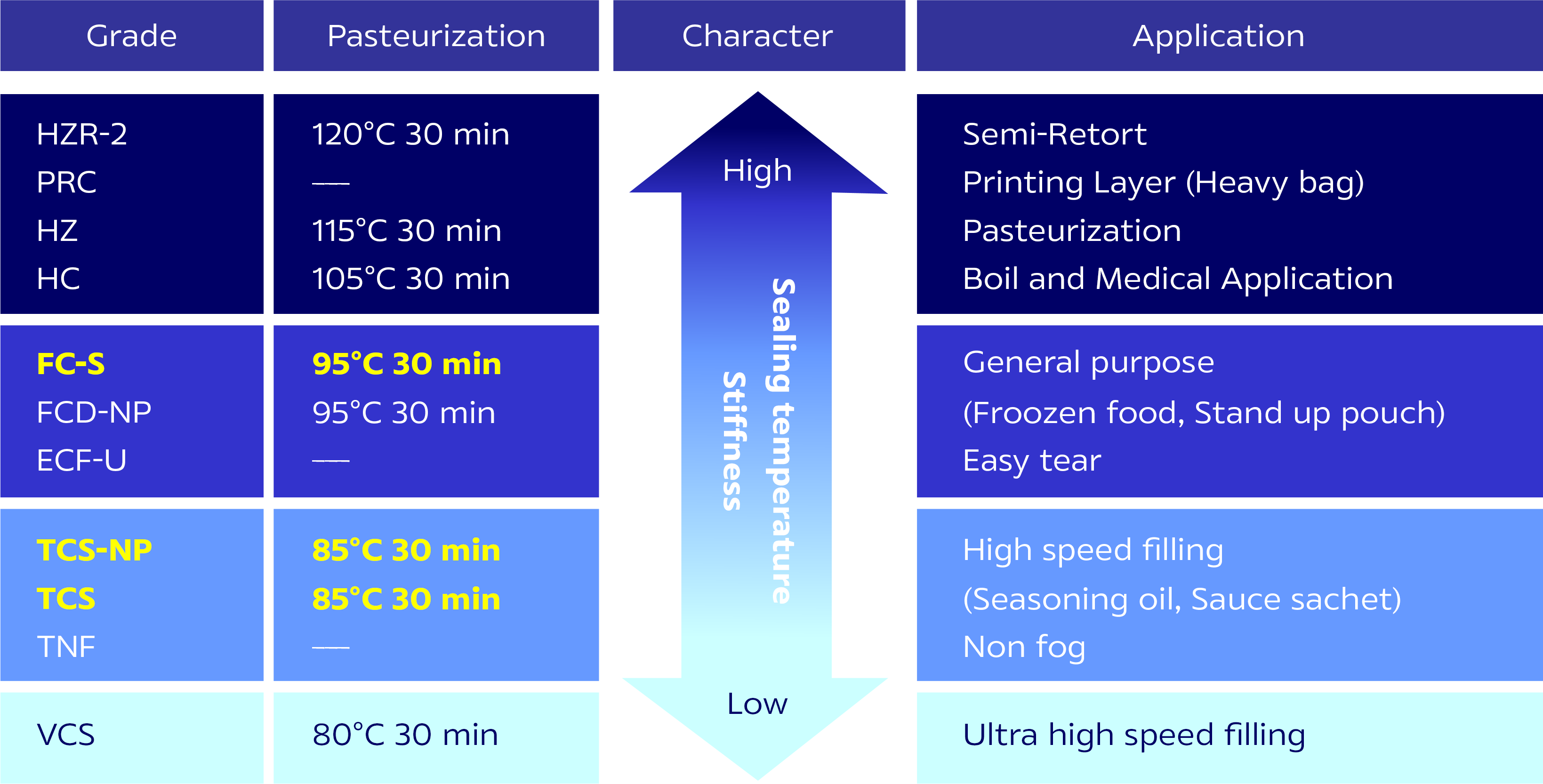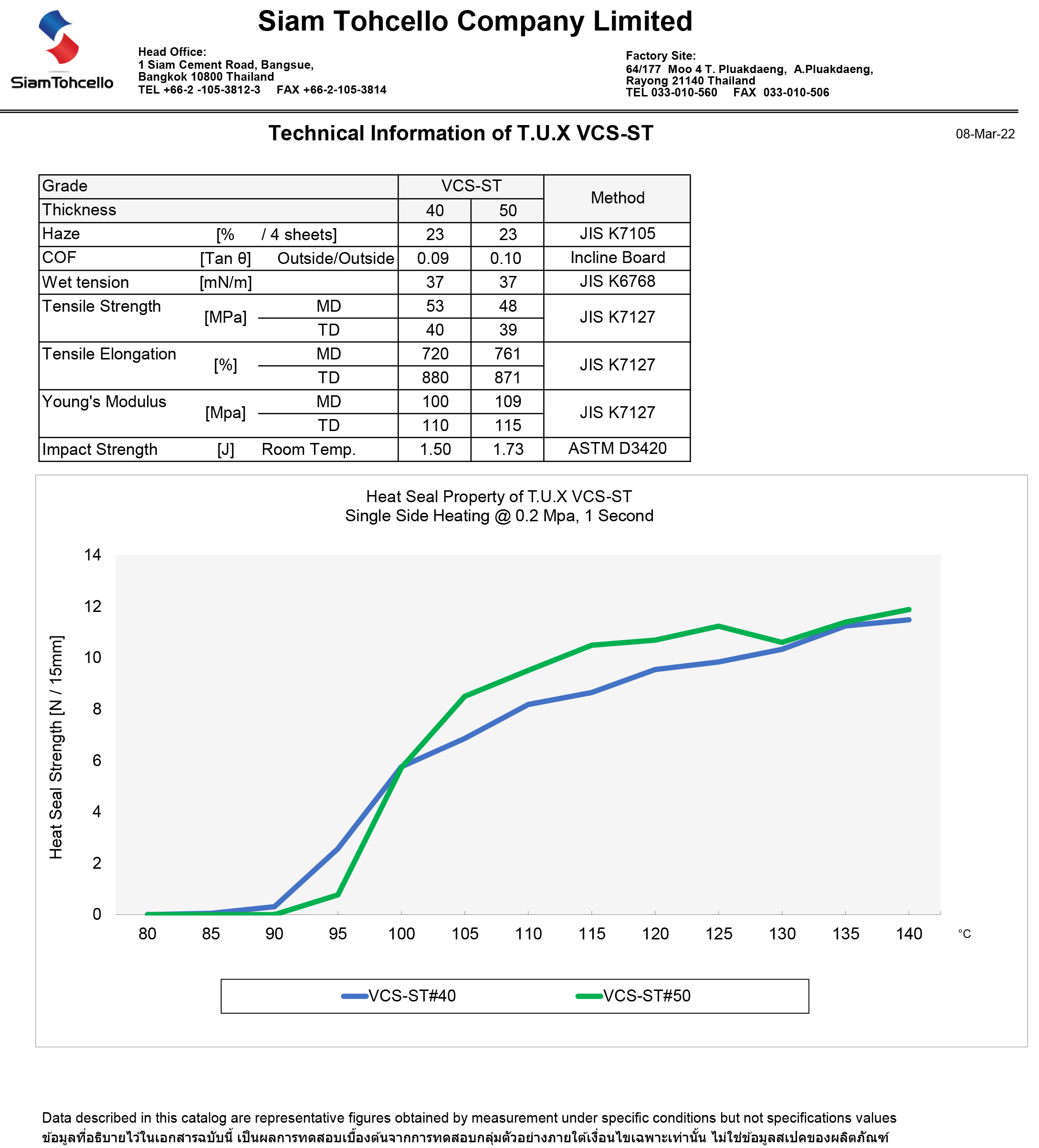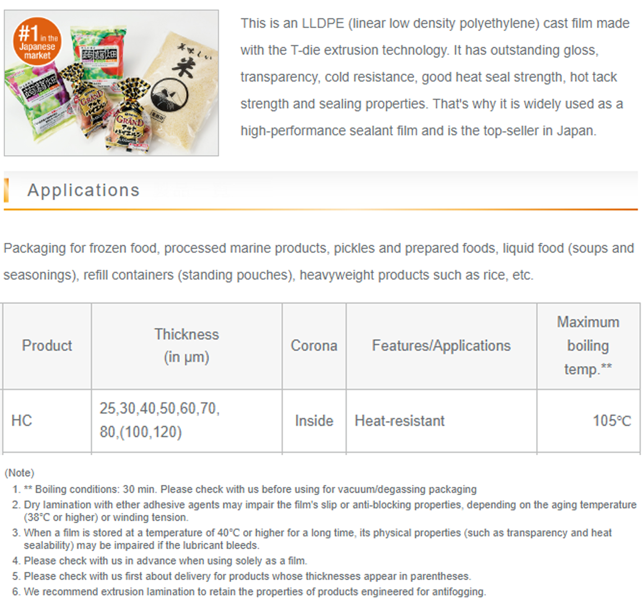 T.U.X™ FCS is high functional cast LLDPE sealant film (Metallocene grade). This grade is suitable for pasteurization condition 95 degree Celsius 30 minute. It has outstanding gloss, transparency, cold resistance, good heat seal strength, hot tack strength and sealing properties. It is suitable for general purpose application.