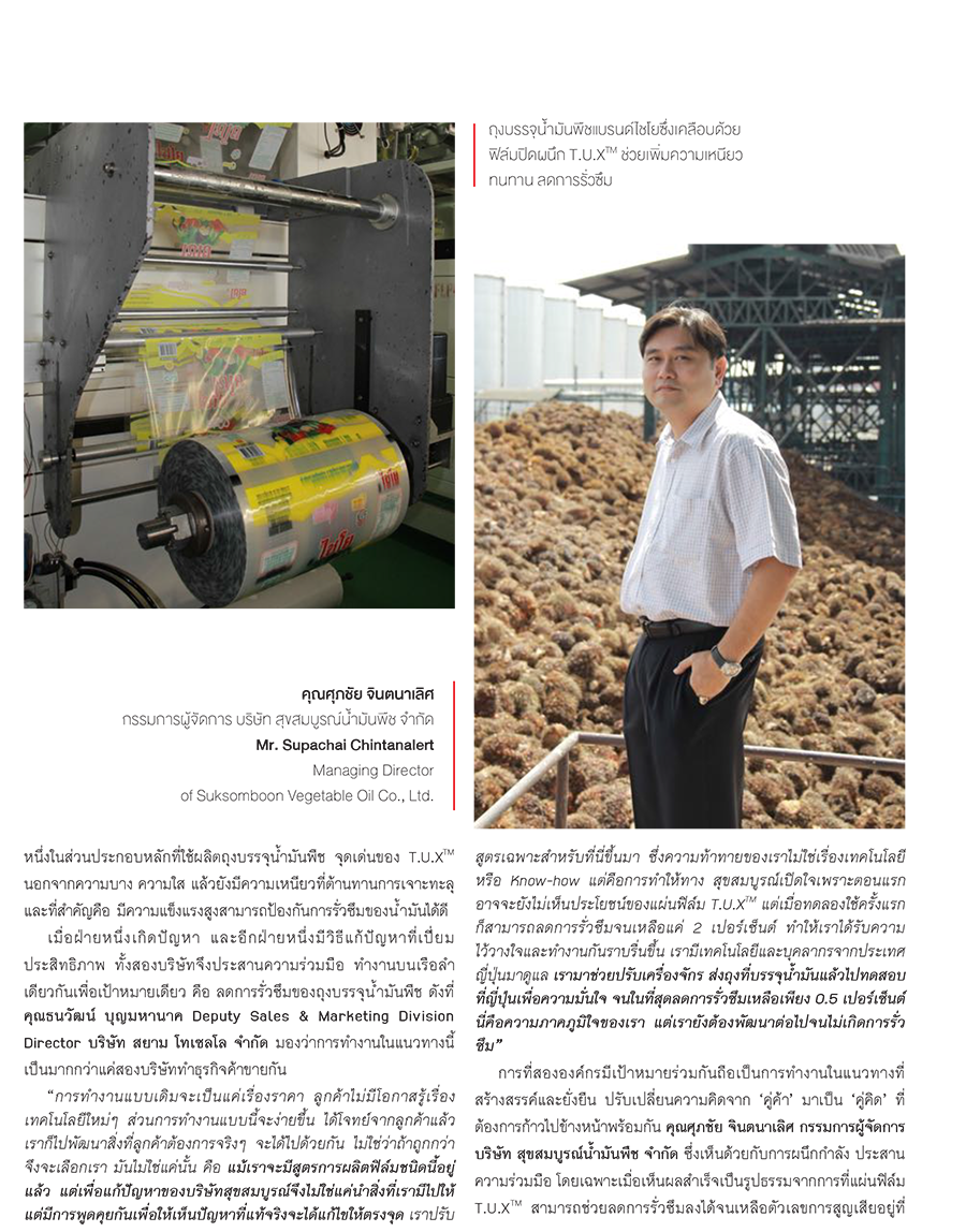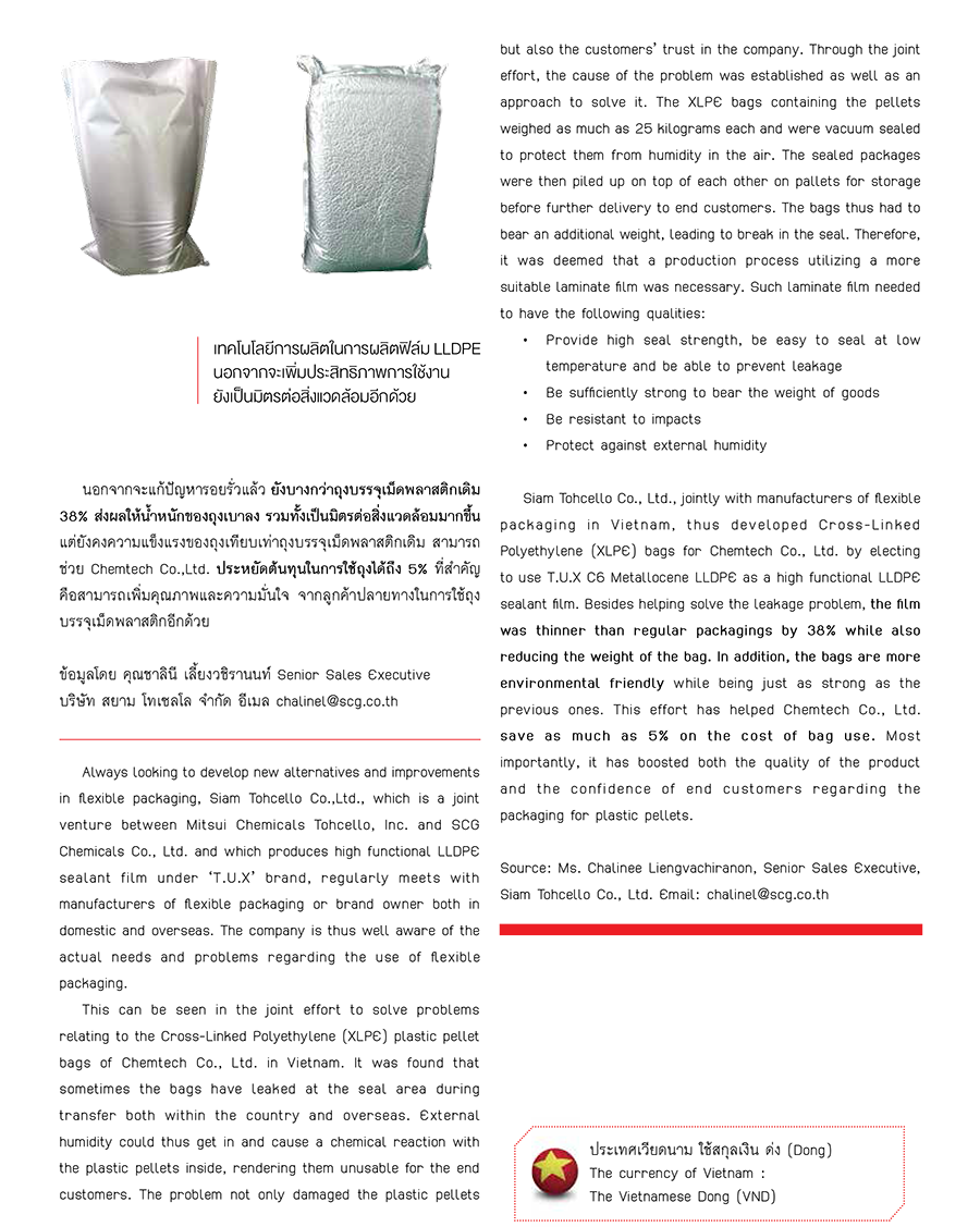 T.U.X™ TCS is high functional cast LLDPE sealant film (Metallocene grade). This grade is suitable for pasteurization condition 85 degree Celsius 30 minute. It has outstanding gloss, transparency, cold resistance, good heat seal strength, hot tack strength and sealing properties. It is suitable for low sealing temperature and high speed filling application.