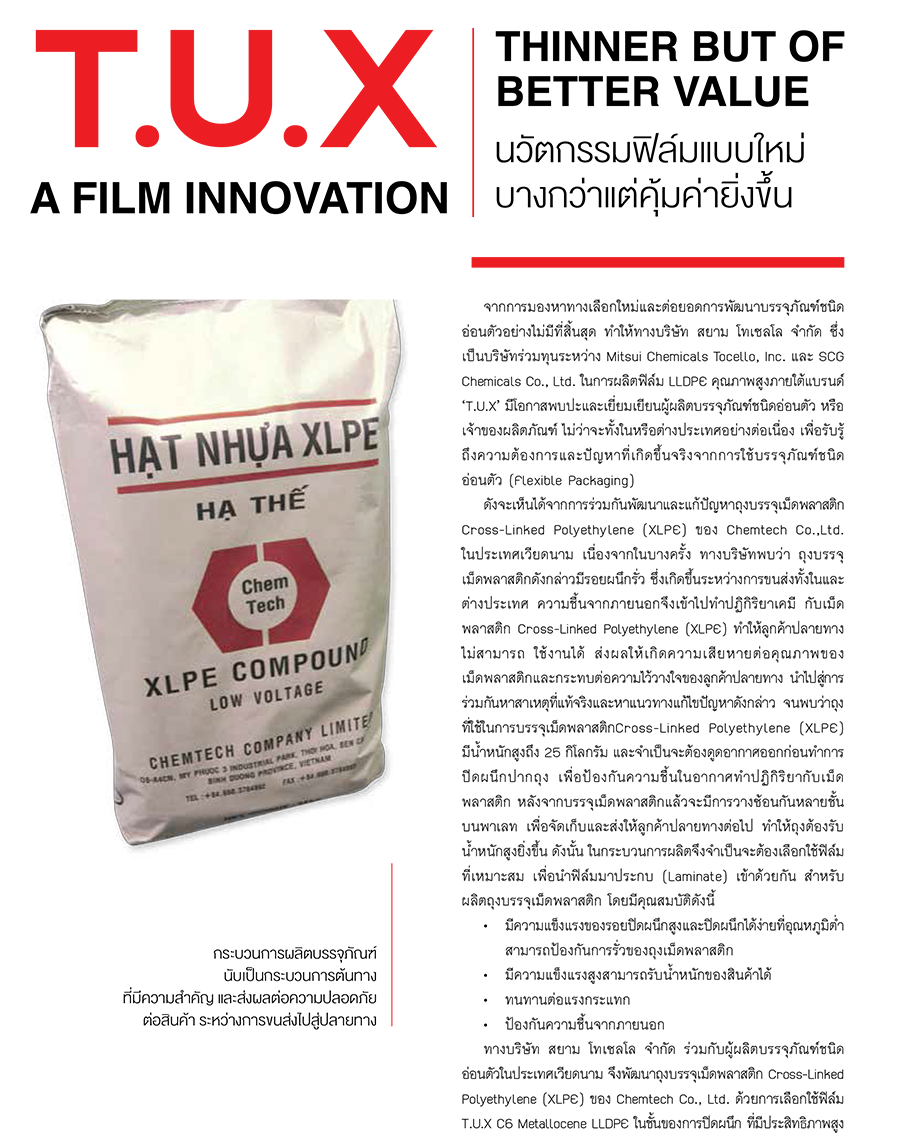 T.U.X™ IS A LLDPE FILM MANUFACTURED BY T-DIE CAST METHOD USING 100% METALLOCENE LLDPE