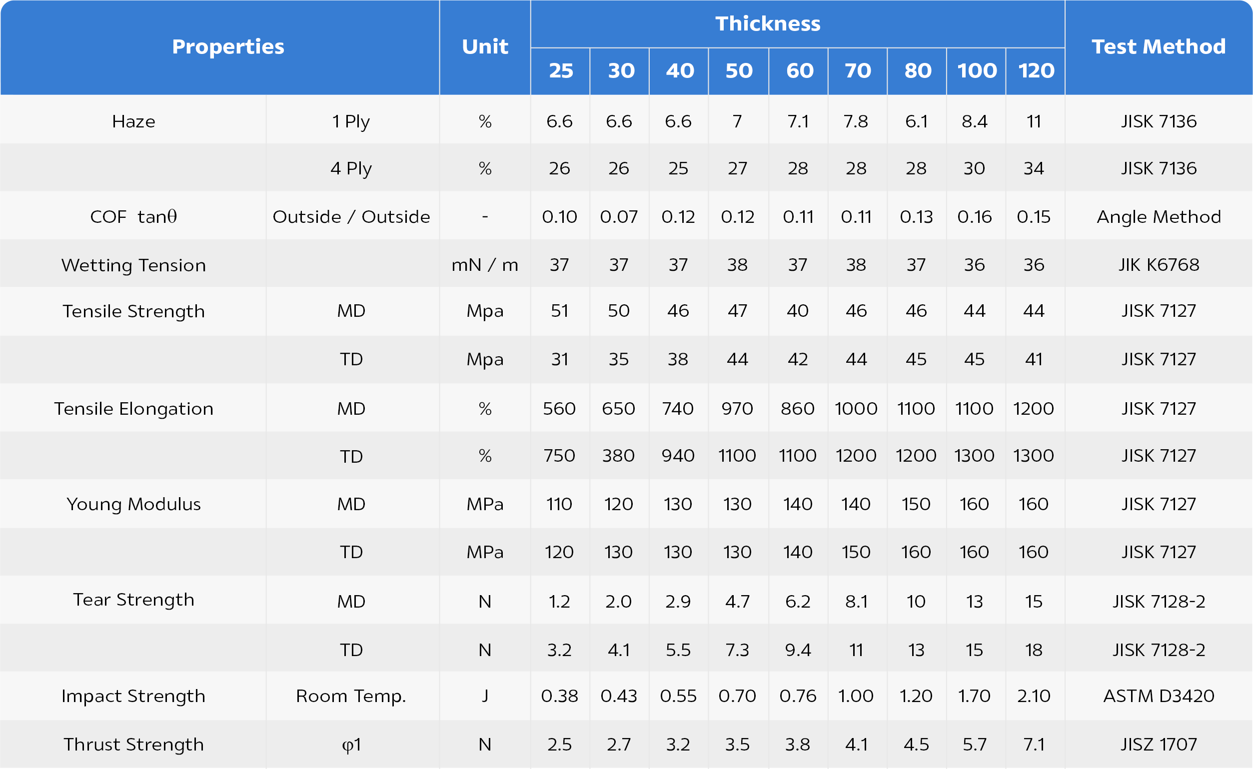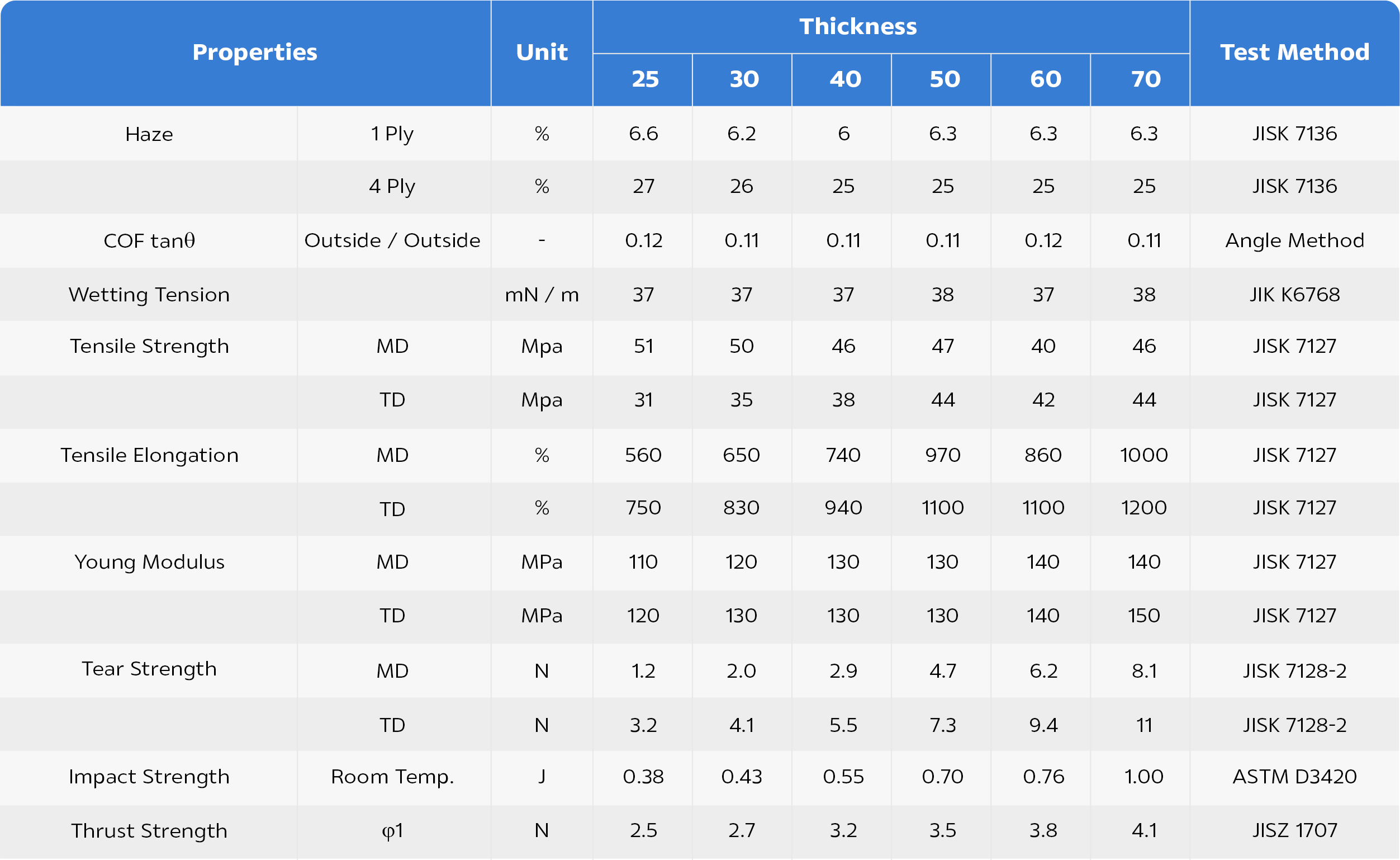 • Thickness: 25, 30, 40, 50, 60 and 70 microns